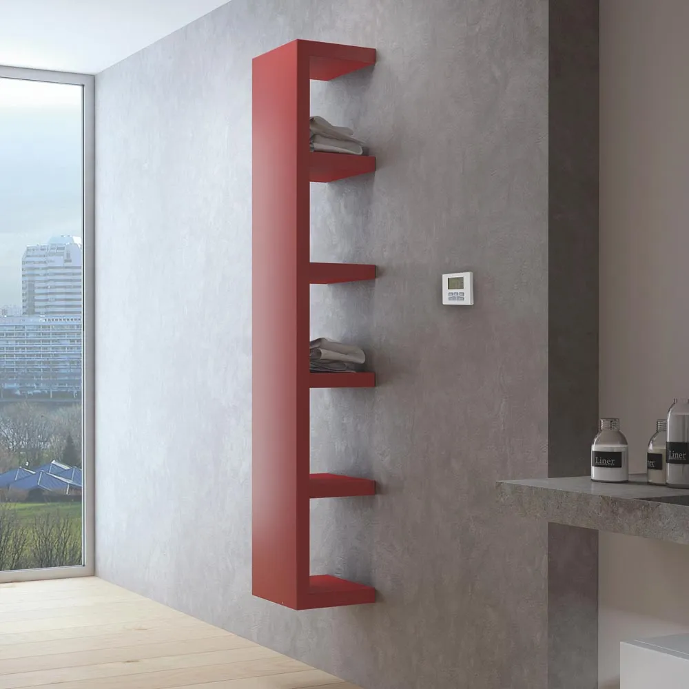 Der leistungsstarke Quadraqua von BEMM ist weit mehr als eine dekorative Wärmequelle. Er ist eine Kombination aus Möbel und Heizkörper. Seine groß proportionierten Fächer sind als Regal nutzbar und eignen sich perfekt, um Handtücher vorzuwärmen.