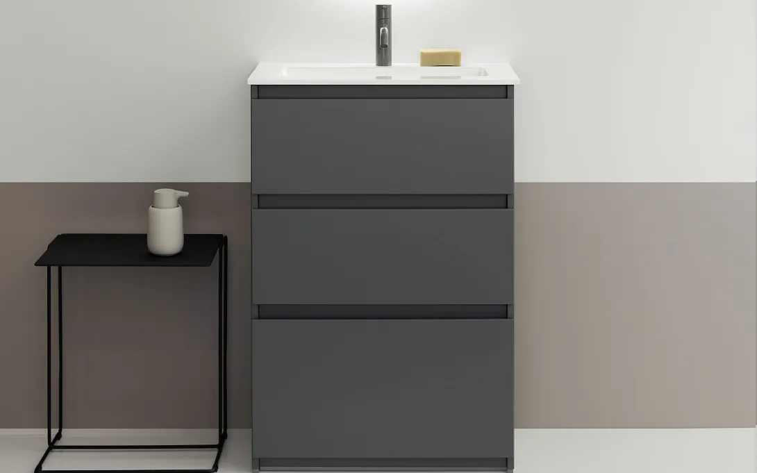 Sämtliche Waschtischunterschränke (erhältlich in 600, 800, 1000, 1200, 1400 und 1600 mm Breite) und Anbauschränke (in 400 und 600 mm Breite) kommen ohne Türen aus. Sie besitzen zwei (wandhängend) bis drei Auszüge (bodenstehend) in asymmetrischer Aufteilung. Beide Schranktypen haben einheitliche Tiefenmaße (357, 407 und 487 mm Tiefe). Die Waschtischunterschränke in Standardtiefe (487 mm) können zudem mit Aufsatzwaschtischen der sys30-Linie kombiniert werden.